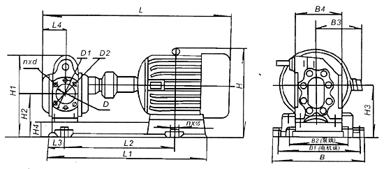 型號(hào) | L | L1 | L2 | L3 | L4 | n×φ | H | H1 | H2 | H3 | H4 | B | B1 | B2 | B3 | B4 | D | D1 | D2 | n×d | 重量 Weight(kg) |